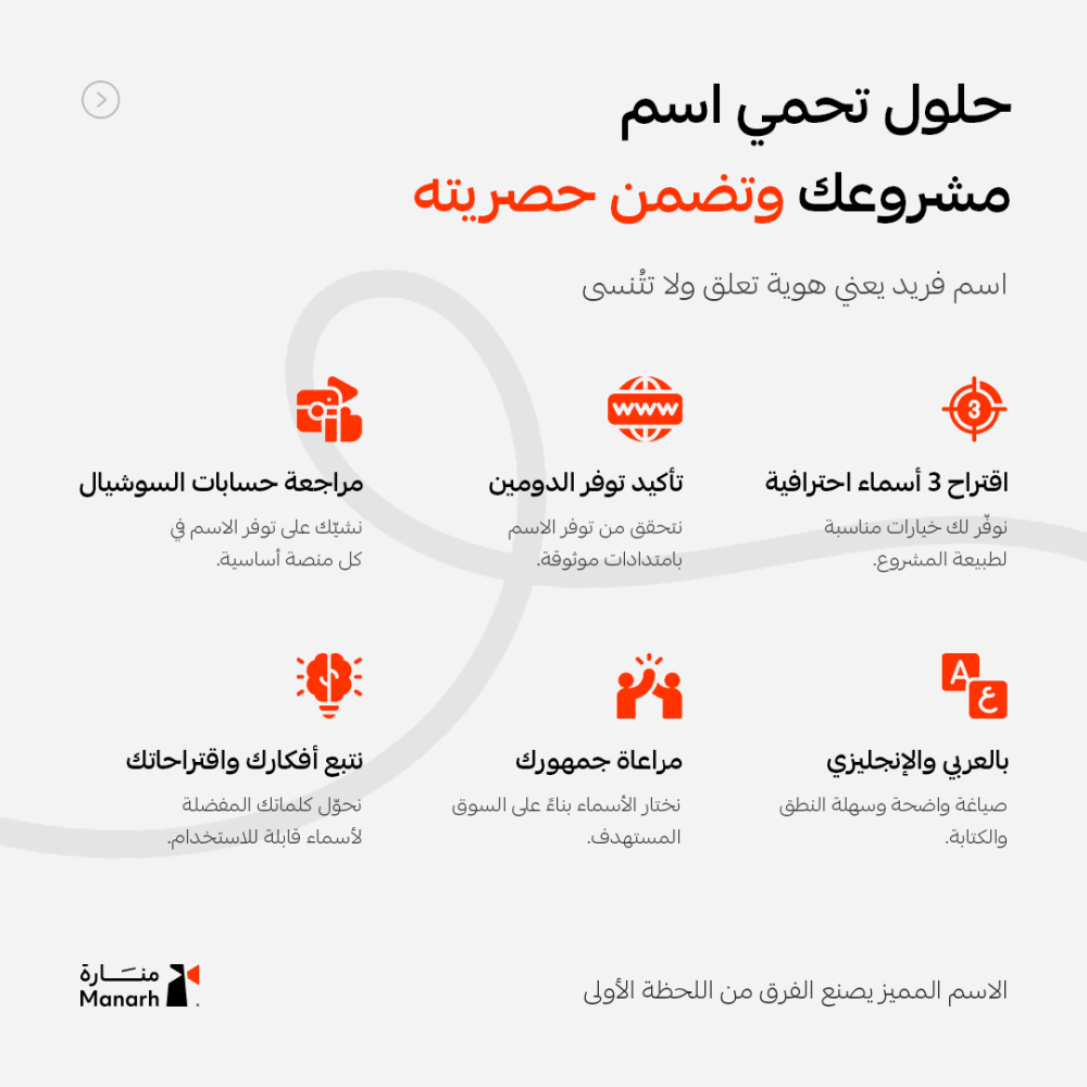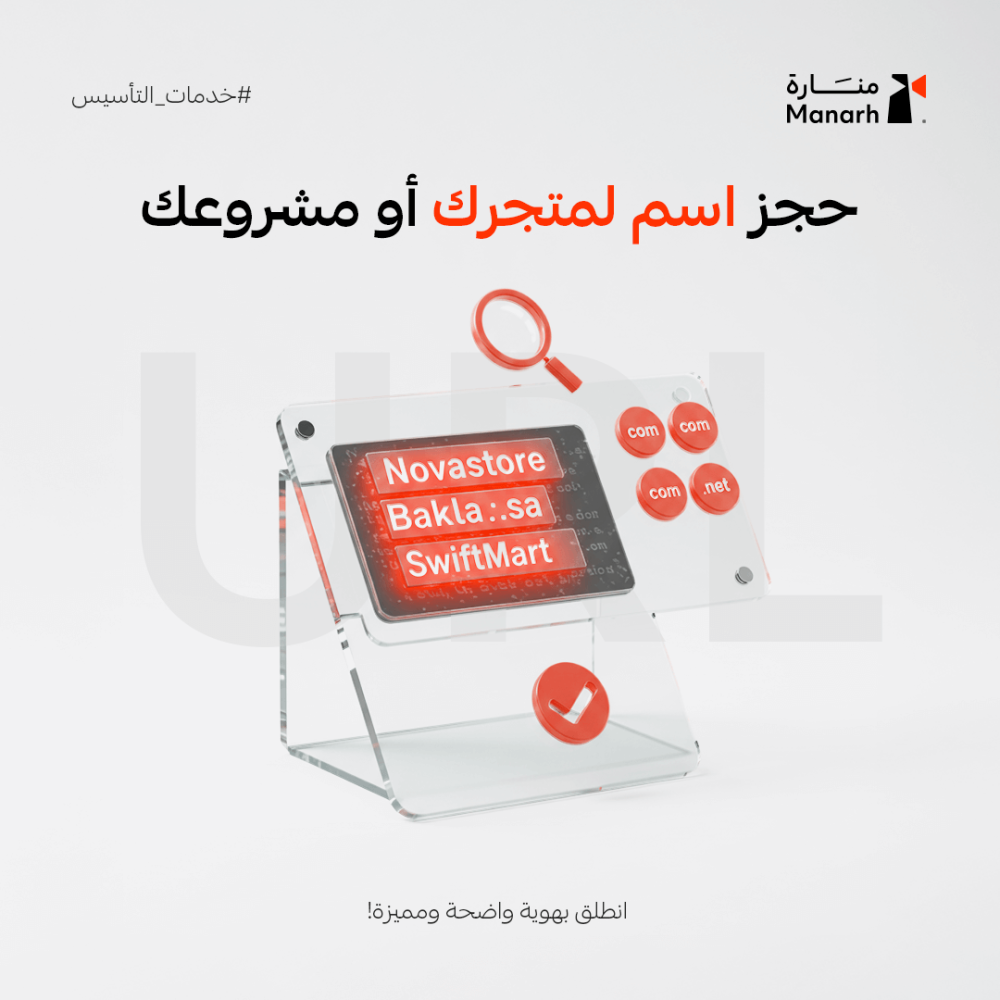 - التأكد من توفر الاسم كـ نطاق دومين (Domain) مثل .com أو .sa.